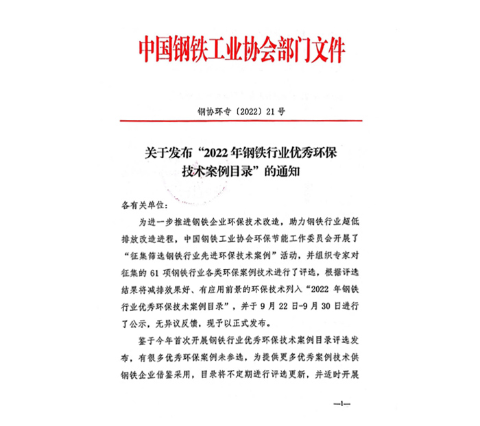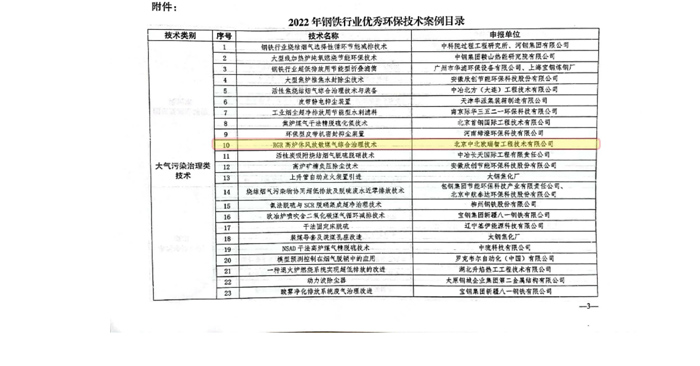 鉴于中北欧瑞智的高炉休风放散煤气全回收技术的显著优势和优异表现,该技术于2022年被中国钢铁工业协会纳入钢铁行业优秀环保技术案例目录,得到了行业专家的高度认可。