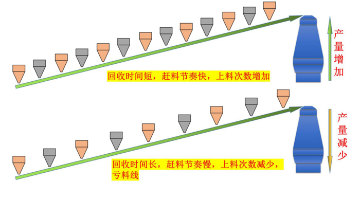 回收速度慢,上料速度减慢,高炉产量就会减少。